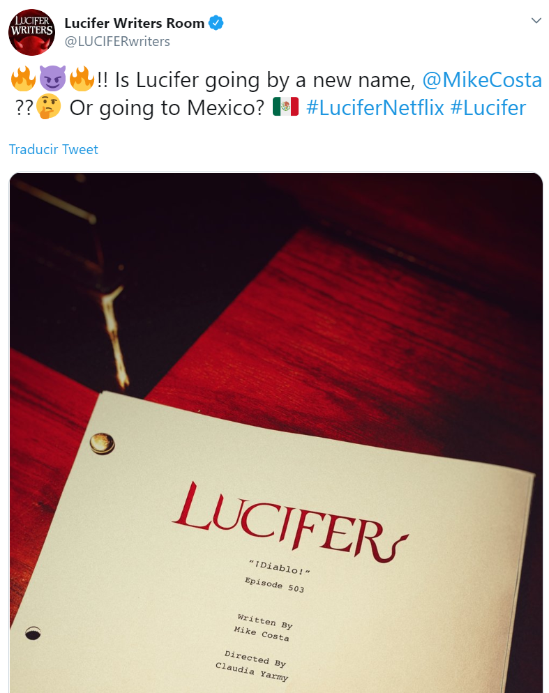 Los guionistas de Lucifer saben el peso que tienen sobre sus hombros con la responsabilidad de escribir los últimos episodios de la serie, por lo que han dado pistas sobre su trabajo con diversas fotografías a sus guiones que revelan el título de los episodios. El primero tiene que ver con “Un diablo realmente triste”, mientras que el segundo es un guiño hacia Beetlejuice y la forma en que le hablan al peculiar personaje. Ahora ha salido una nueva imagen que hace referencia a México… o al menos eso han sugerido los autores.
