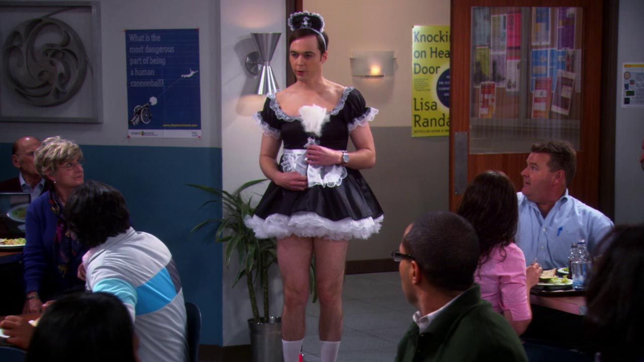El ingeniero (objetivo de burlas de Sheldon) decide ponerle una serie de tareas vergonzosas a su amigo, que incluyen acompañar a su madre de compras, limpiar su amplia colección de hebillas y culminando con la cereza en el pastel haciendo que Cooper se vista con minifalda y con su gorrito como su fuera una señora del aseo. Así tiene que llegar a la cafetería de la universidad en la que trabajan.