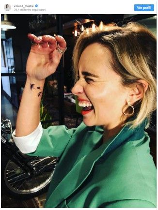 A pesar de que este papel es bastante opuesto al de Emilia en la mencionada serie de HBO, no deja de hacer referencia al rol televisivo que catapultó su carrera, y es que en una escena en particular se pueden observar a sus tres amados hijos en la ficción para la TV: los dragones Rhaegal, Viserion y Drogon. No se trata de un cameo cuando Tom (Henry Golding) dice “mira hacia arriba” ni nada por el estilo, sino de un tatuaje de Clarke en su antebrazo derecho (que puedes ver al final de esta nota).