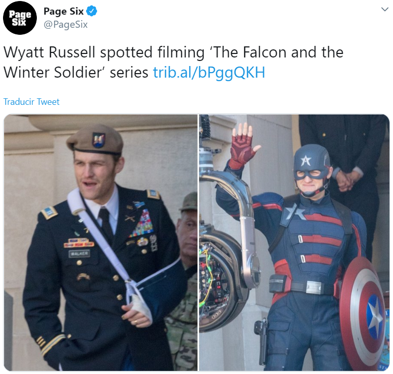Como recordaremos, Steve le da su arma y defensa a Sam para que siga con el legado, por lo que sin duda este será un artefacto muy deseado por varios personajes en la serie. Esto queda comprobado (al menos parcialmente) en las fotografías filtradas, ya que no es precisamente Falcon quien tiene la herramienta de protección, sino que U.S. Agent (Wyatt Russell) lo porta, uno de los personajes que debutará en la producción.