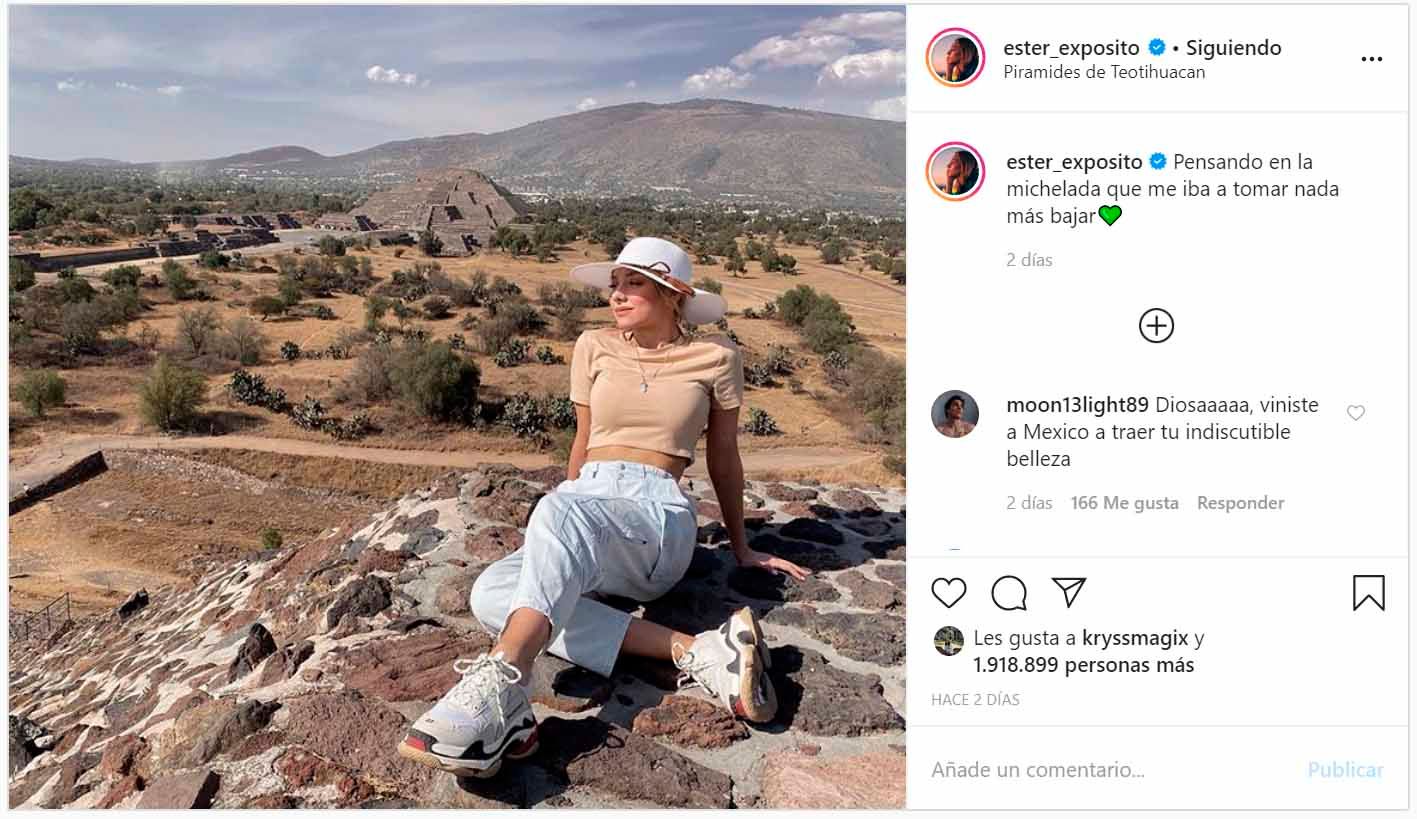 Las redes sociales hicieron eco en esta situación cuando algunos fans subieron fotos de Ester y Alejandro en la zona arqueológica de Teotihuacán, tanto que la actriz se volvió tendencia en Twitter algunas horas. Ella también subió una foto y ha compartido historias a la par de Speitzer, en las que ambos están en los mismos lugares. Al parecer ambos recorrieron los sitios históricos, como la Calzada de los Muertos, el Templo de Quetzalcóatl, la Pirámide de la Luna y la Pirámide del Sol.