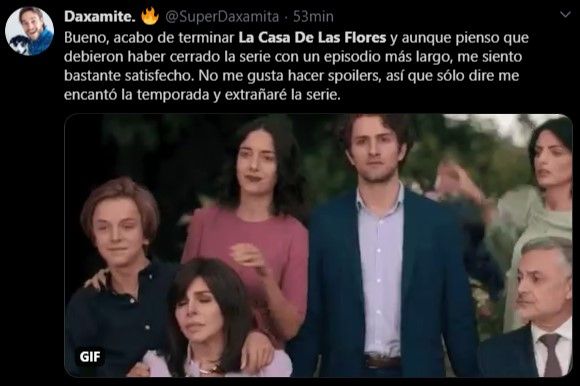 La tercera y última temporada de La casa de las flores ha llegado a Netflix y con ello la familia de la Mora se despide, aunque antes de hacerlo ha comenzado a generar varias reacciones positivas sobre el desenlace definitivo. Ya que la serie estuvo disponible a partir de las 2 a.m. de este jueves, muchas personas se desvelaron para ver los 11 episodios que componen la entrega número tres y la varios han compartido su opinión en redes sociales.