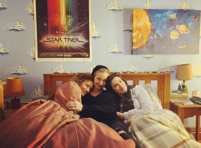 “Lo hice, un puñado de veces. Cuando es el fantasma completamente sin rostro que arrastra a la gente a través de la casa, se trata de una doble llamada Daniela Dib. Ella hizo mucho del trabajo pesado por mí, para que pudiera estar en casa amamantando a mi hijo, en lugar de estar atrapada en una máscara de silicona, caminando alrededor de un conjunto frío”.
