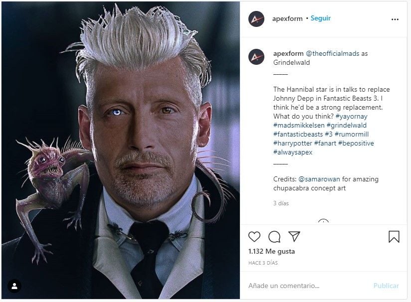 'Animales fantásticos 3': Surgen nuevos detalles sobre la trama y el guionLa imagen subida en la cuenta de Instagram del artista rápidamente tuvo una gran cantidad de Likes y se hizo viral. En cuanto al casting, el actor deberá aceptar su participación en los próximos días, ya que en los sets de grabación se encuentran Eddie Redmayne, Ezra Miller, Jude Law y demás. Para Mikkelsen no sería nada nuevo estar en una saga Hollywoodense, ya que ha participado en filmes como Doctor Strange o Rogue One: Una historia de Star Wars, por lo que sabe cómo funciona la maquinaria de los blockbusters y tiene experiencia en ello. De su rango histriónico ni hablar, ya que se trata de uno de los mejores actores internacionales del momento.