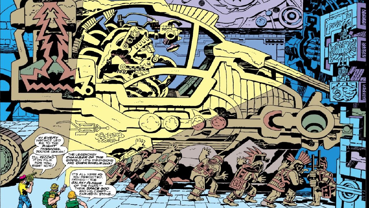 El boom de todas estas especulaciones se incrementó y pusieron en duda el ingenio del hombre antes de Cristo, cuando se construyeron varias edificaciones y monumentos que narran la historia de la humanidad. Por ejemplo, Teotihuacán, las Pirámides de Giza, Machu Picchu, Stonehenge y la Isla de Pascua, por mencionar algunas, cuyo levantamiento se atribuyó a la mano extraterrestre. Para su serie de Eternals, debutante en 1976, Kirby explicó que Los Eternos se mantuvieron en las cumbres más altas de la civilización y construyeron sus asentamientos ahí.