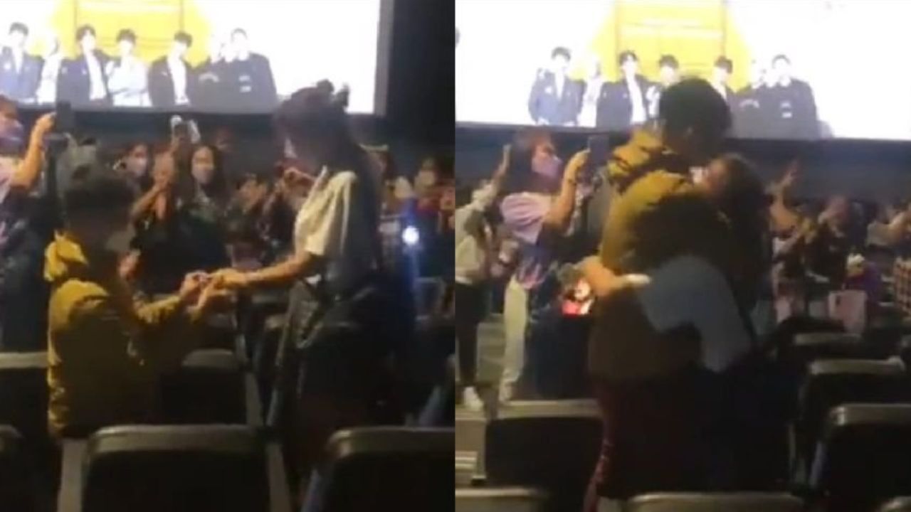 Parece que Machine Gun Kelly no es el único que quiere a los Bangtan Boys como regalo de bodas. Una pareja de ARMY se comprometió durante el evento del pasado 12 de marzo en Cinépolis, cuando se transmitió el concierto que vio de regreso a BTS en el Estadio Olímpico de Seúl. Si bien el concierto no pudo ser transmitido en tiempo real por diferencia de horario (hubiera sido en la madrugada), los complejos de Cinépolis fueron abarrotados por fanáticos desesperados por ver de regreso a los idols.