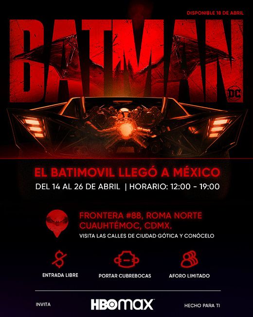 ¡Atención, fanáticos de The Batman! HBO Max acaba de anunciar que las calles de la Ciudad de México recibirán al imponente batimóvil que el detective murciélago de Robert Pattinson diseñó para atrapar al Acertijo (Paul Dano), El Pingüino (Colin Farrell) y el resto de criminales en Ciudad Gótica. Y lo mejor de todo: ¡Será una actividad gratuita!