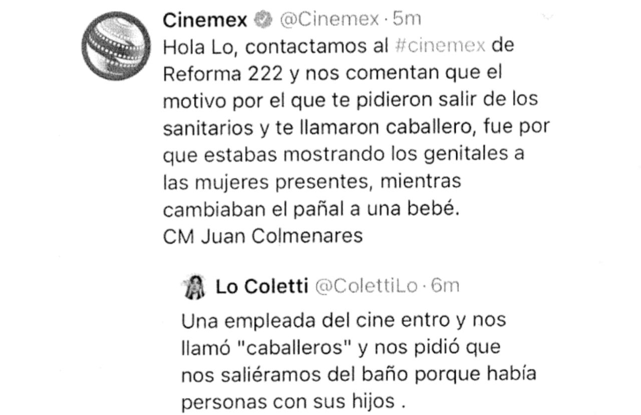 Los hechos se dieron en el complejo ubicado en Plaza Reforma 222, curiosamente uno de los puntos de reunión dónde cada 28 de junio se conmemora la lucha contra la discriminación a la comunidad LGBTQ+. Al salir de ver una película, la joven camina hacia el sanitario, cuando trabajadores le obstruyen el paso, la nombran como 'él', en vez de ella y finalmente la corren del lugar.
