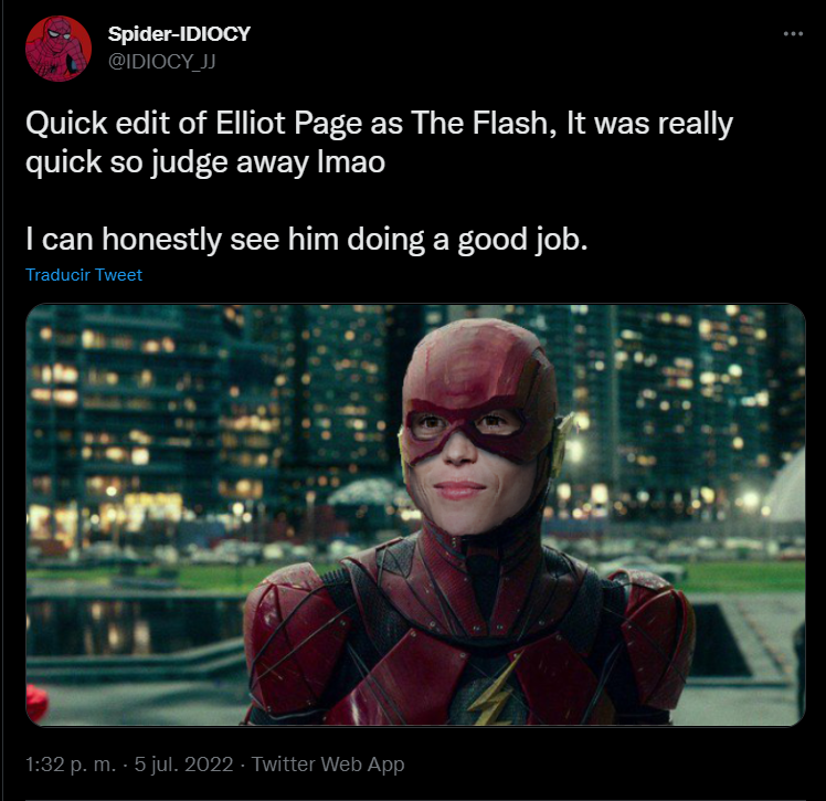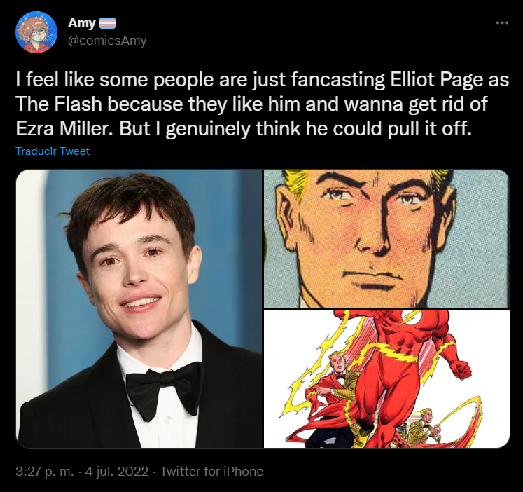 "Elliot Page podría interpretar perfectamente el Flash de Barry Allen cuando Ezra sea despedido. No lo veo como Flash de los cómics, pero el Flash de Zack Snyder que parece continuar en la nueva película y podría ser Elliot", escribió un usuario de Twitter.