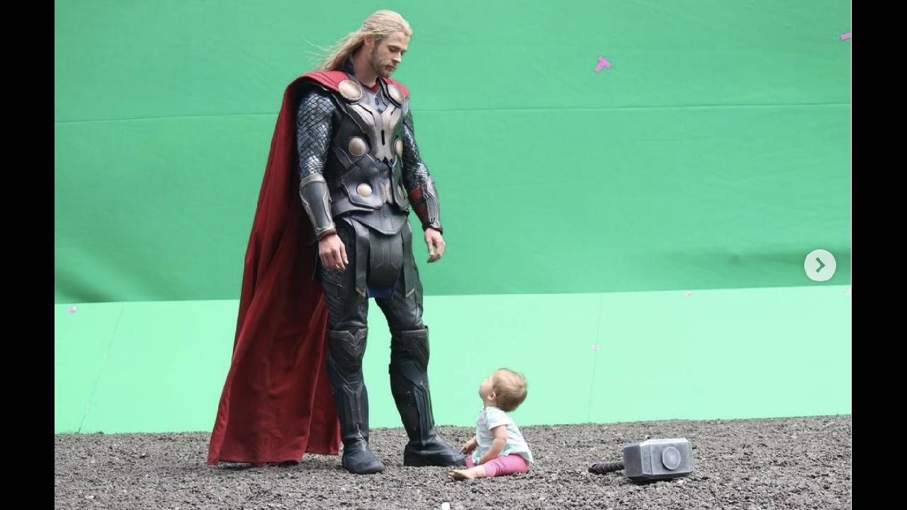A través de su Instagram, el australiano nos enseñó cómo India lo acompañó desde que era una bebita que apenas gateaba. Estuvo en Thor, de Kenneth Brannagh, mirando a su padre y justo a un costado del martillo. El ahora es igual de tierno, porque, contrario lo que uno pensaría, India no fue esa niña hiperactiva que estuvo dando lata por todo el set, seguro sí estuvo jugando pero terminó tan agotada que encontró muchas siestas en los brazos de su padre.