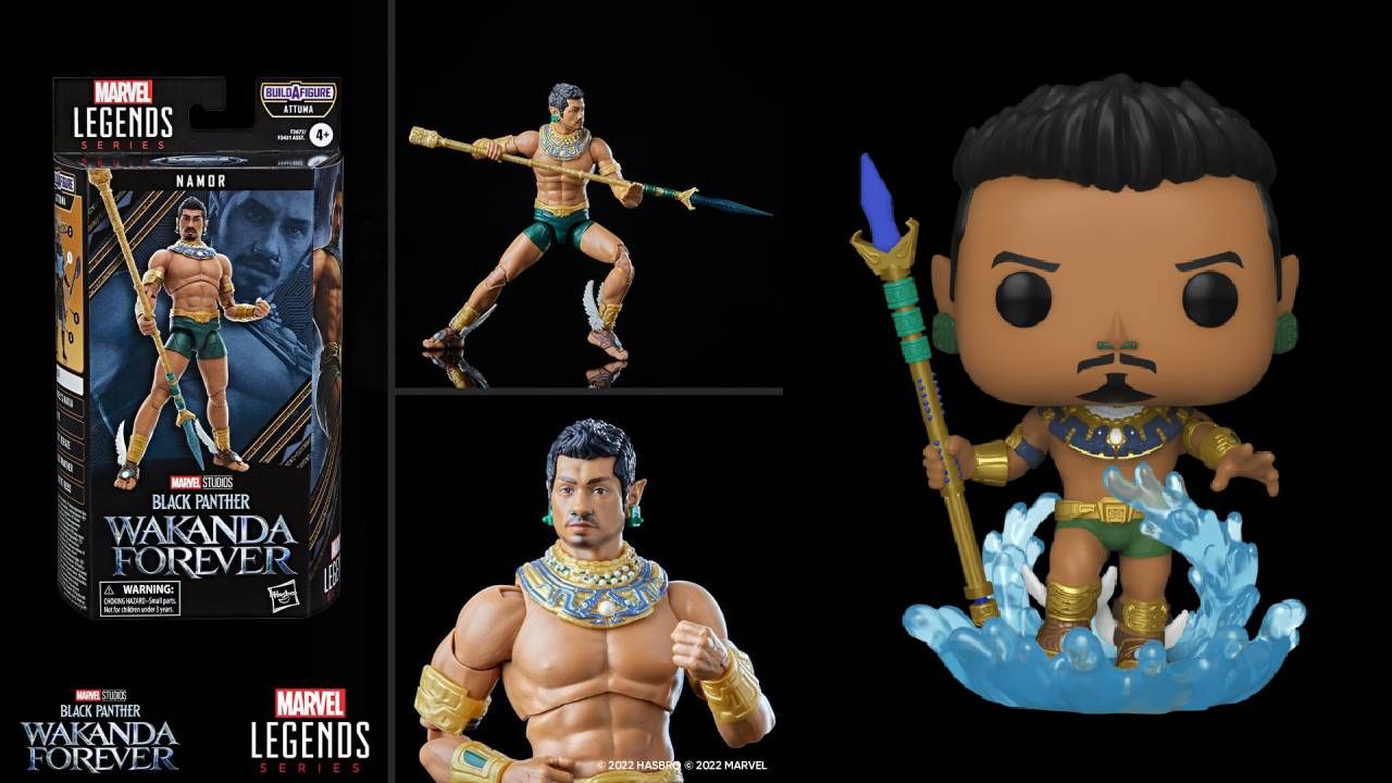 Hasbro ya liberó las primeras imagenes de Namor bajo la marca de su línea Marvel Legends, cuyo inicio data de 2002. La escala de 15 centímetros de Namor incluirá una parte armable de Attuma (Josué Maychi), el resto se pueden encontrar en otras figuras de la misma película; dos manos abiertas y una lanza que es el equivalente del triudente de Neptuno, en los cómics, del rey de la atlántida marvelita. Recordemos que este personaje es el equivalente a Aquaman en DC.