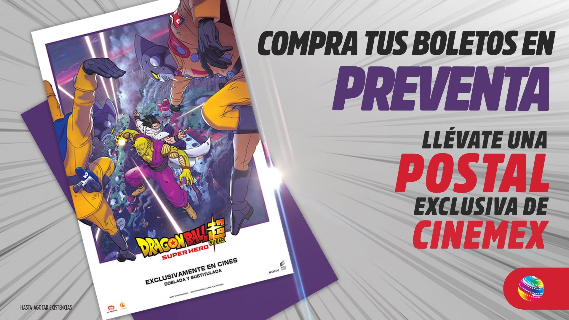 A través de redes sociales de la cadena en la que también puedes encontrar títulos como Bestia, El perro samurái: La leyenda de Kakamucho y el reestreno de la trilogía de El señor de los anillos, confirmó que podrás obtener una postal edición especial de Dragon Ball Super: Superhéroe, con cada transacción que hagas en taquilla.
