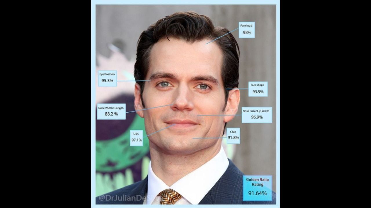 En segundo lugar del estudio se posicionó el actor que interpreta a Superman en el universo cinematográfica de DC, Henry Cavill, con 91.64%. De Silva señaló que Cavill obtuvo la puntuación general más alta en los labios y la frente, así como una puntuación muy alta de la proporción áurea en nariz y posición de los ojos.