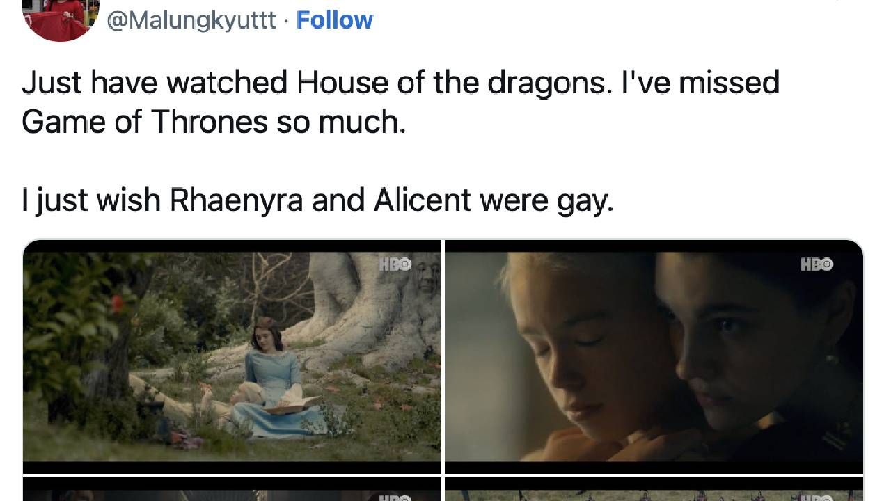"Ellas representan a las lesbianas de clóset de todos los tiempos: 'quiero ir a montar dragones y comer pastel', eso se dicen mientras están acostadas en el pasto. Eso es muy gay", opinó @marcy_wuz_here. "Ellas van de amigas, amantes a enemigas", piensa @ArtofASOIAF, y ésta es una cuenta especializada en la obra de Martin. Les decimos, no está declarado pero es bastante natural que este tipo de relaciones se sugieran en las páginas, en especial viendo el árbol genealógico Targaryen.