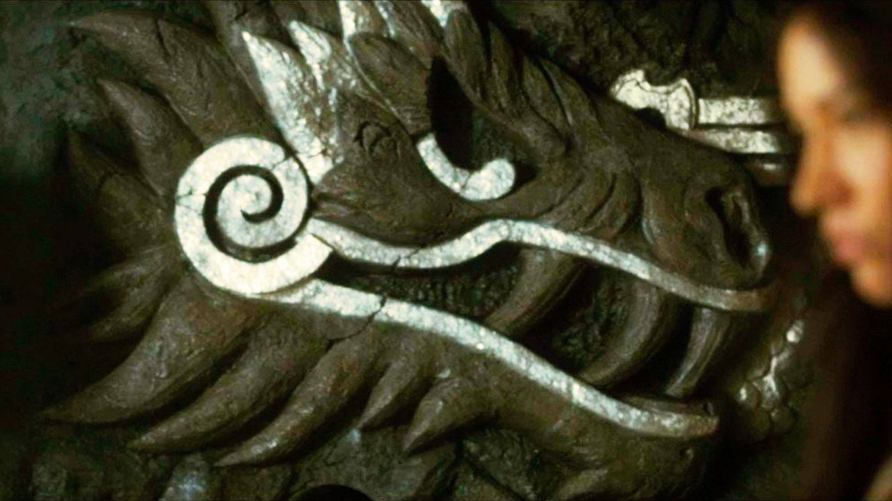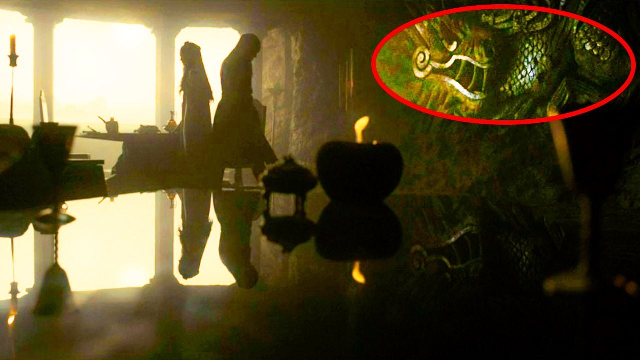 El drama quedó atrás cuando Rhaenyra (Alcock) encaró a su tío. Una vez que Daemon regresó el huevo de dragón, regresó a sus aposentos junto a su amada, Mysaria (Sonoya Mizuno). Es en este momento donde se muestra cómo una de las paredes de piedra tiene tallada la imagen de un dragón idéntico al dios azteca; esta escena puedes encontrarla alrededor del minuto 39.