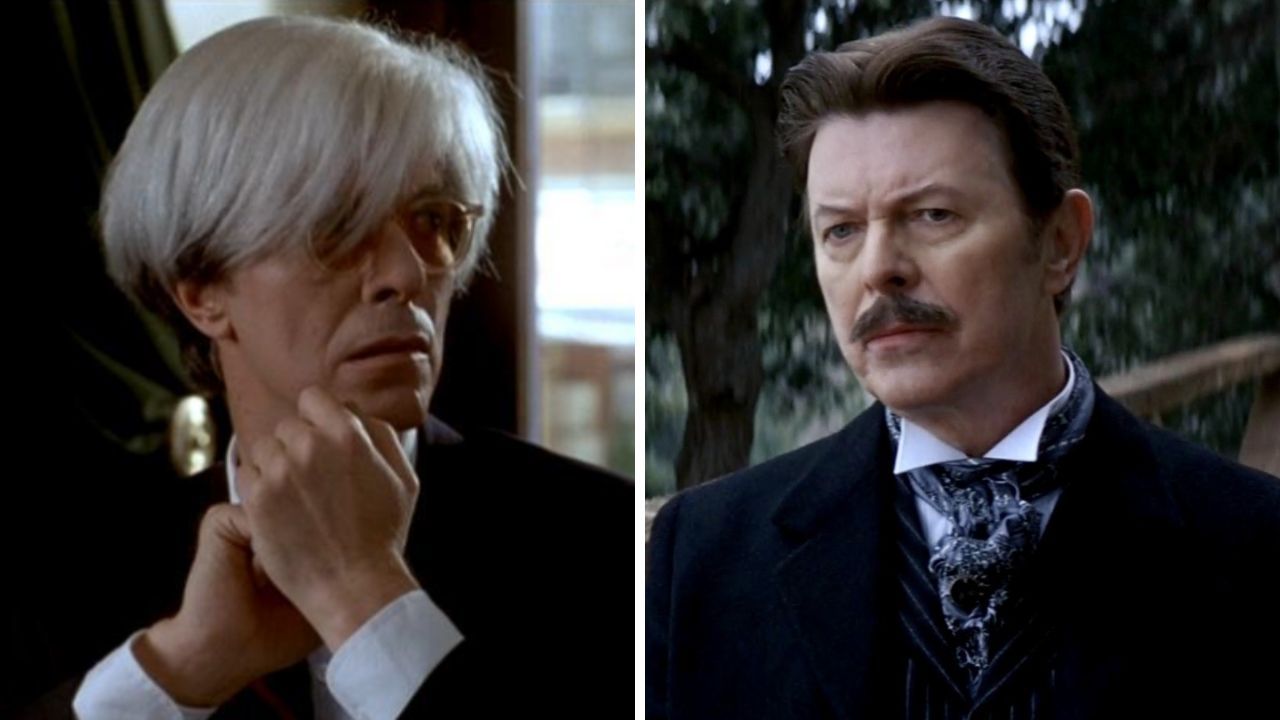 Primero pongámonos artísticos con una película biográfica del artista Jean-Michel Basquiat, protagonizada por Jeffrey Wright en el papel titular, dirigida por el cineasta y pintor Julian Schnabel y que cuenta con Bowie robándose absolutamente el espectáculo al aparecer como Andy Warhol imitando sus gestos y manierismos. Y de ahí transitamos a finales del siglo XIX en El gran truco para ser testigos de cómo dos magos escénicos (Christian Bale y Hugh Jackman) luchan entre sí por quién tiene el mejor truco. Bowie interpreta aquí al ingeniero de la vida real Nikola Tesla, quien ayuda a uno de ellos con un dispositivo intrigante. Es una aparición pequeña pero importante y el director Christopher Nolan tuvo que viajar personalmente a Nueva York para que Bowie aceptara.