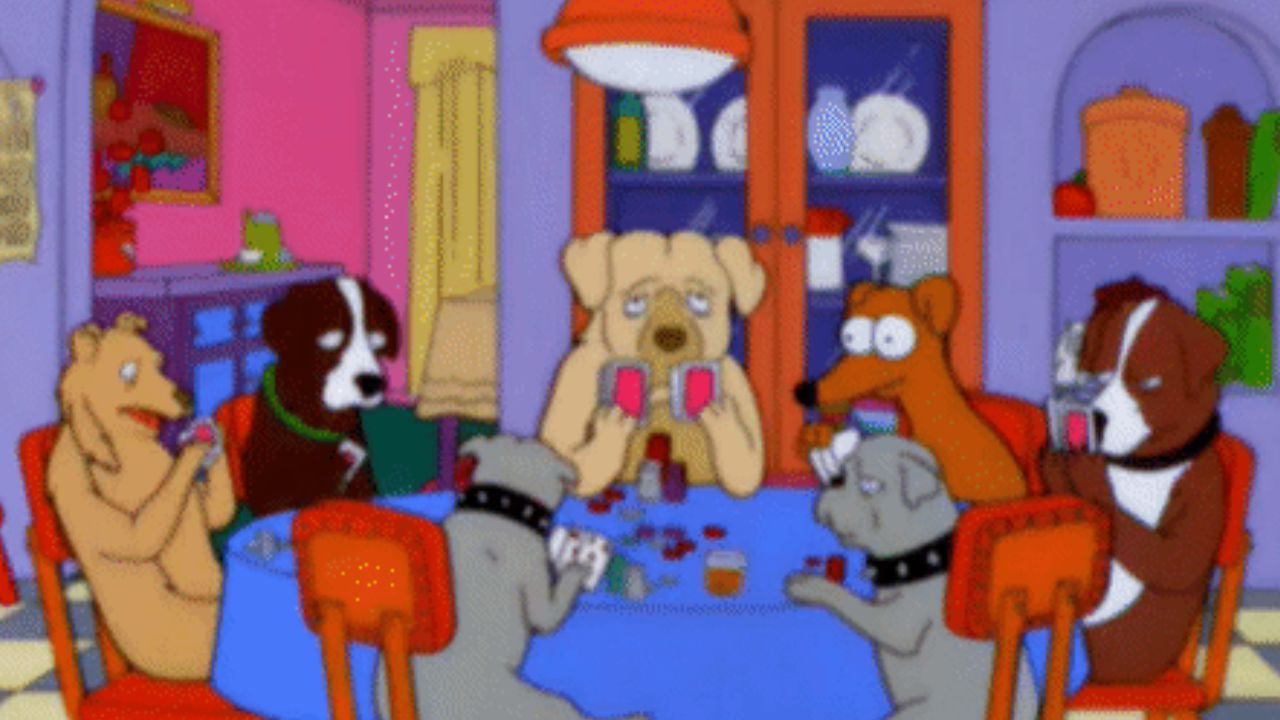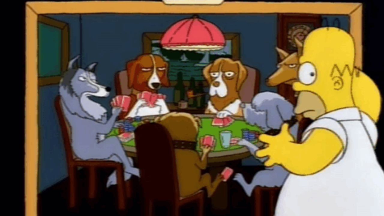 En el especial de Halloween de la temporada 5 de Los Simpson, Bart presenta el último segmento diciendo que tienen “la pintura más aterradora de la noche”. Mirarlo te vuelve loco. Luego, la cámara muestra a Homero frente al cuadro mientras grita: "Ahh, son perros... y están jugando al póquer", momento que puedes revivir en Star Plus. Luego sale corriendo. Bart concluye afirmando que la historia de la pintura del perro de póquer era demasiado aterradora, por lo que simplemente prepararon otra historia.