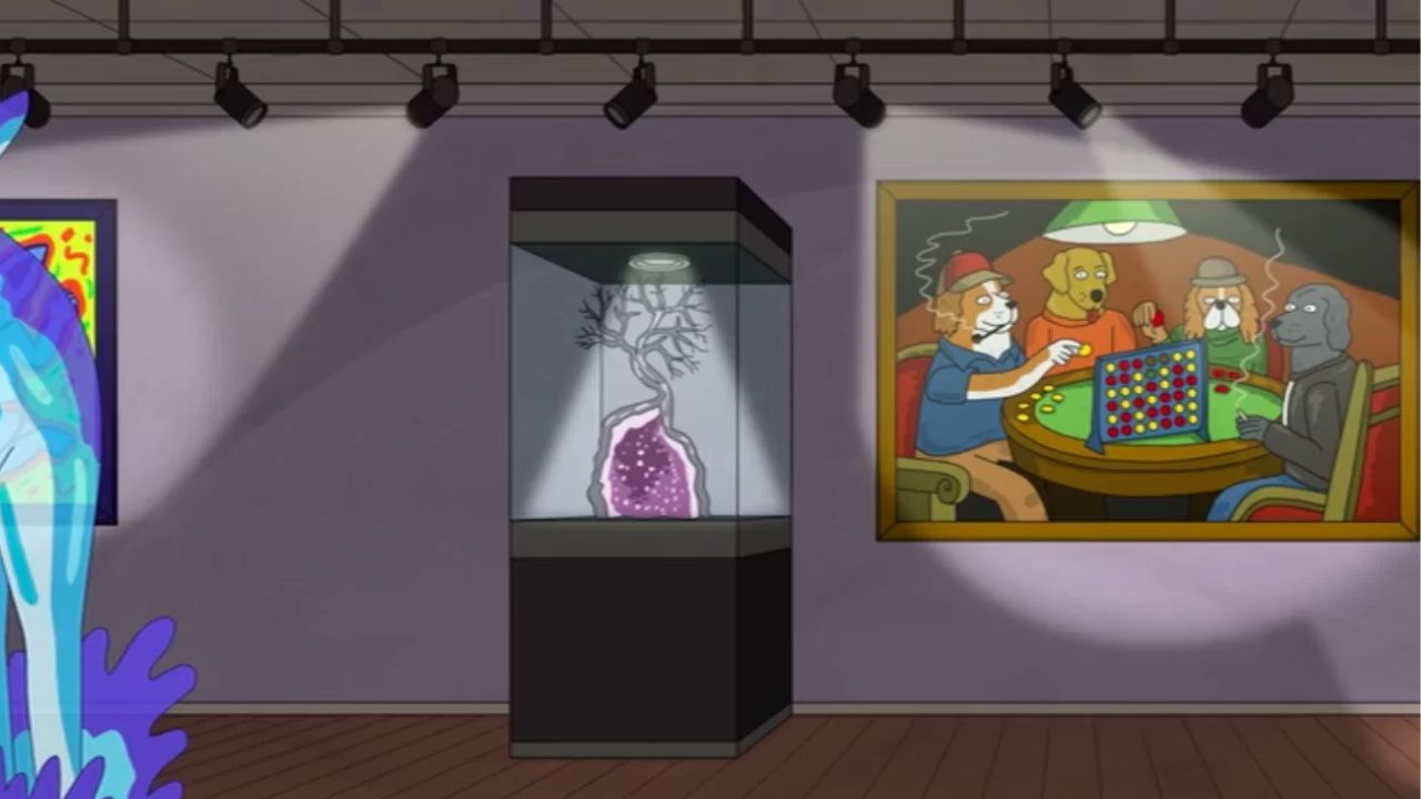No hay ningún episodio en la serie BoJack Horseman que esté específicamente dedicado al mundo del arte, pero hay muchas referencias dispersas, ya sean obras de arte llamativas que decoran las oficinas y los apartamentos de los protagonistas, o algunos gags bien intencionados sobre los principales artistas de la cultura estadounidense, desde Rauschenberg hasta Jackson Pollock, pasando por Cassius Marcellus Coolidge y sus famosos perros jugadores de póquer que aparecen en el episodio 9 de la segunda temporada.