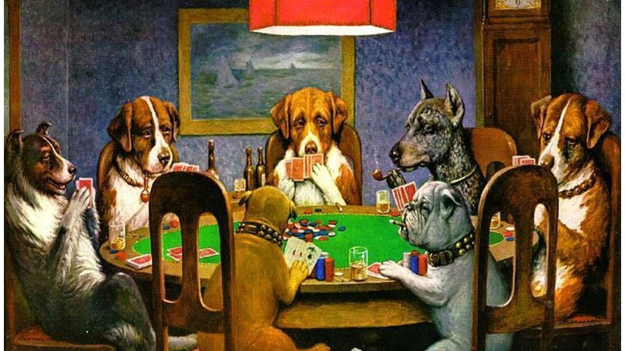 Se trata de una serie de 18 pinturas al óleo encargadas en 1903 por Brown & Bigelow para anunciar cigarros. Todos los cuadros son escenas de perros humanizados, sentados a la mesa y jugando cartas.