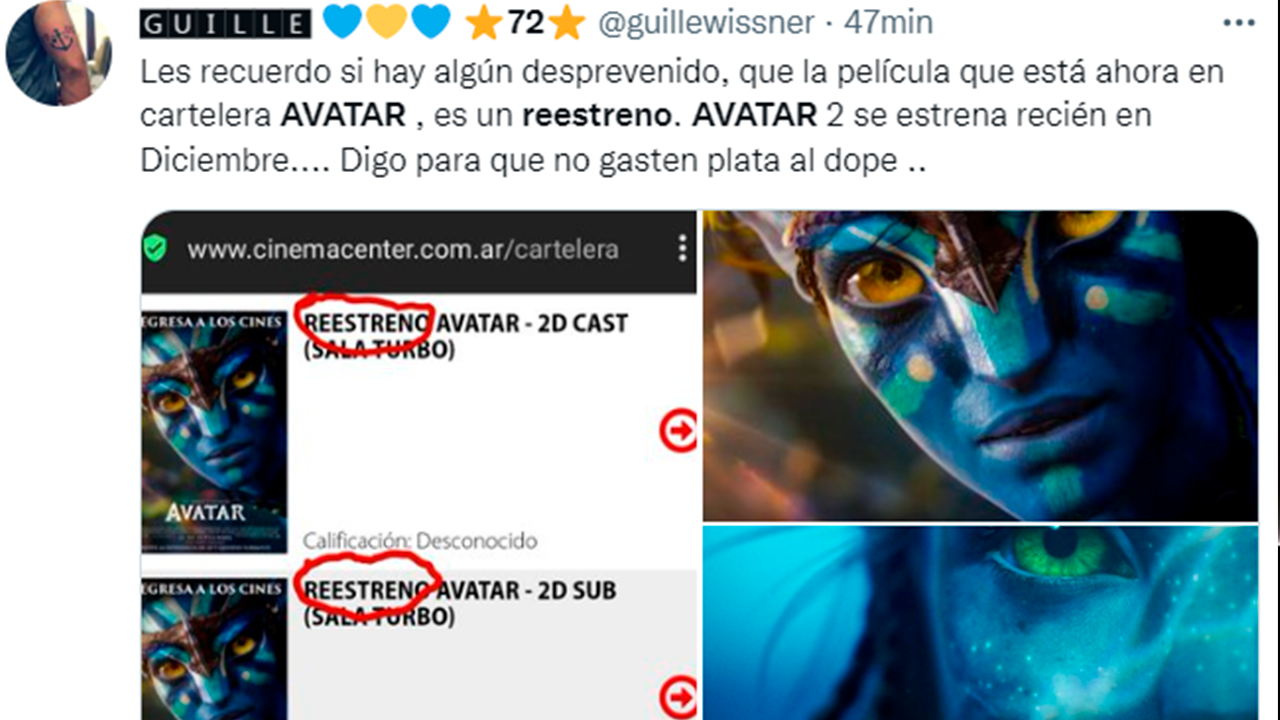 Entre la euforia, hubo quienes al ver el título en cartelera creyeron que se trataba de Avatar: El camino al agua, la nueva película de James Cameron, por lo que no dudaron en comprar sus boletos. Pero, muchos de ellos se llevaron una decepción al descubrir que estaban viendo la misma película de 2009.
