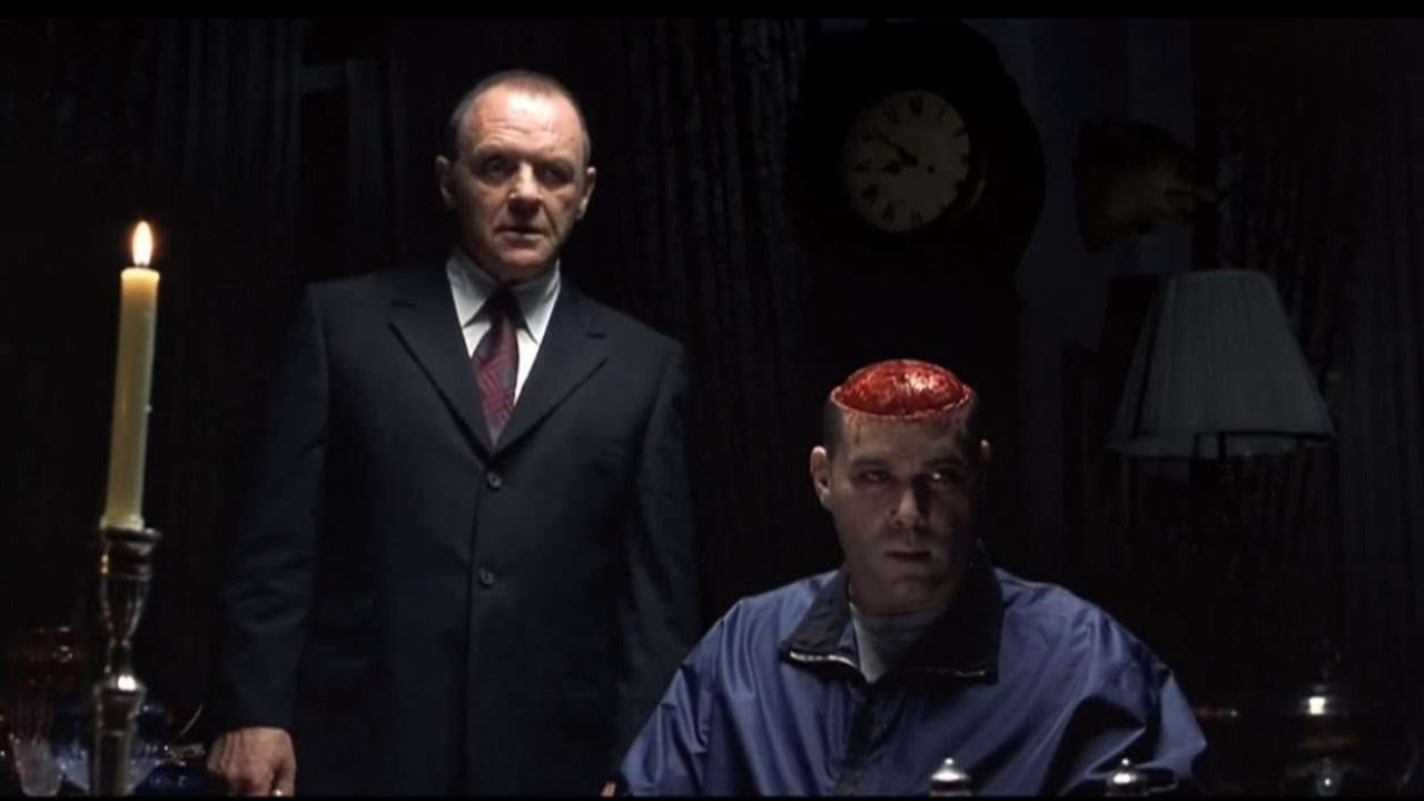 Si bien El silencio de los inocentes de Jonathan Demme será mejor recordado por presentar al mundo en general al personaje de Hannibal Lecter (interpretado por Anthony Hopkins), es Hannibal de Ridley Scott (que puedes apreciar en Star Plus), donde realmente lo vemos hacer sus espantosos actos. En una de las escenas más espeluznantes y grotescas,, Hopkins corta la parte superior de la cabeza de un agente federal (Ray Liotta), extrae parte de su cerebro y luego se lo sirve en un plato, todo mientras la valiente agente del FBI Clarice Starling (Julianne Moore) observa horrorizada.