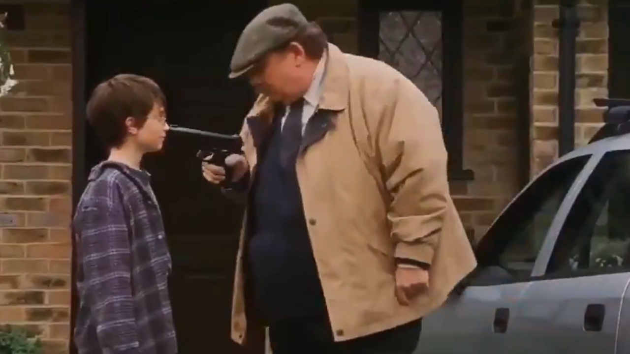 En este divertido vídeo nos demostraron que las cosas serían muy diferentes si los magos usaran armas de fuego y al parecer a los personajes no les cuesta nada de trabajo usarlas. Pero que no te engañen, aunque el pequeño Harry (Daniel Radcliffe) parece estar sorprendido por tener una pistola, debemos decirte que la usa mejor que Sylvester Stallone en Rambo. De hecho, de un balazo logra romper los cristales del zoológico y hace caer a Dudley (Harry Melling) junto a la temible Naguini.
