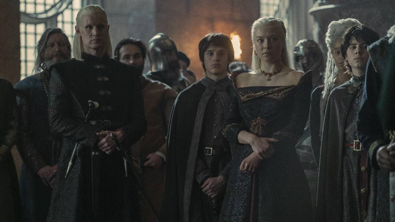 Enojado, como el programa lo enseñó, Aemond se mofó de la bastardez de los hijos de Rhaenyra, cuyo padre biológico en realidad es el difunto Harwin Strong (Ryan Corr) y no Laenor Velaryon, causando la furia de los herederos de Marcaderiva. Pero, inteligentes, guardan compostura y es Jace el que pega una cachetada con guante blanco a los de melena latinada: saca a bailar a Halaena quien, realmente, fue desposada junto a su hermano a Aegon II ¡por decreto de su propio padre!