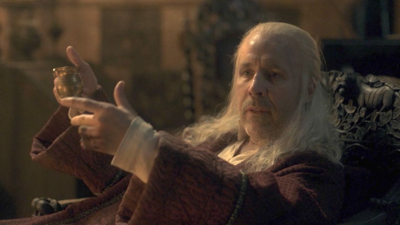 “Lo que hice fue convertirlo en este tipo de personaje drag, porque creo que muchos actores, actores británicos en especial, guardan algo de camp en su interior, y con ese tipo de cabello y las ropas de Viserys no pude resistirme a tener un poco de realeza Targaryen; lo hice caminar al estilo catwalk. Me transformé en este personaje solo por diversión, a veces en el set te vuelves loco”, señaló el actor que ha participado en películas como Macbeth, Wolf y Crímenes ocultos.