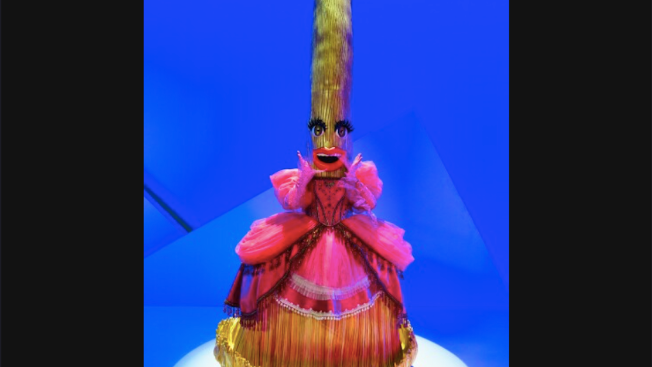 Llevando puesto un hermoso vestido pomposo de color rosa con muchos detalles, Escoba fue embrujada para volar por los cielos. Sin embargo, el hechicero terminó dándole un don inigualable para deleitar al público con su hermosa voz.
