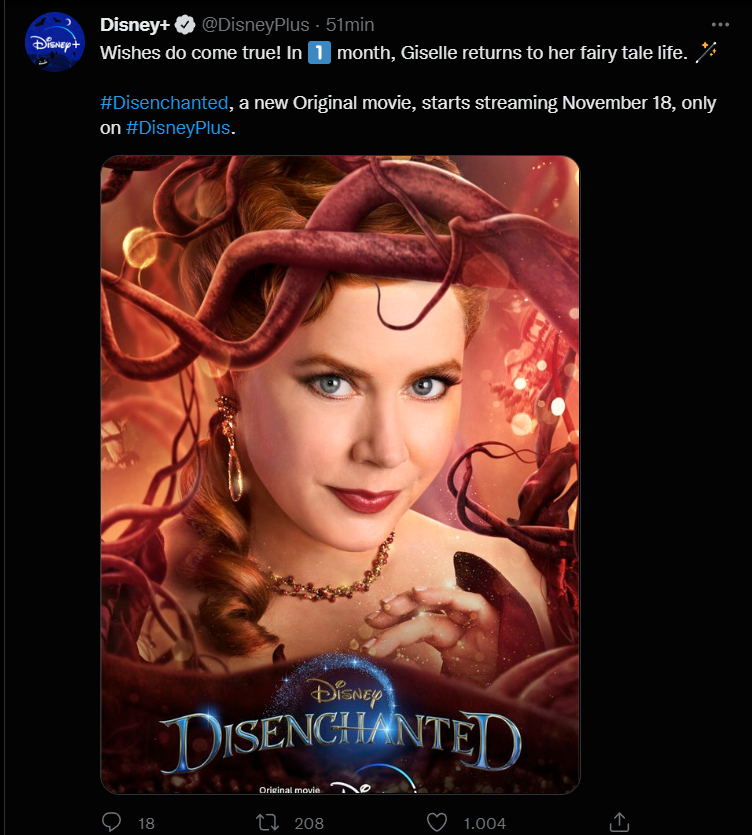 A través de redes sociales Disney Plus confirmó la noticia con el siguiente mensaje: "¡Los deseos se hacen realidad! En un mes, Giselle vuelve a su vida de cuento de hadas", espera un momento… ¿cómo que en un mes? Sí, tal como leíste, ¡el próximo 18 de noviembre llegará la secuela de Encantada a su catálogo de novedades!
