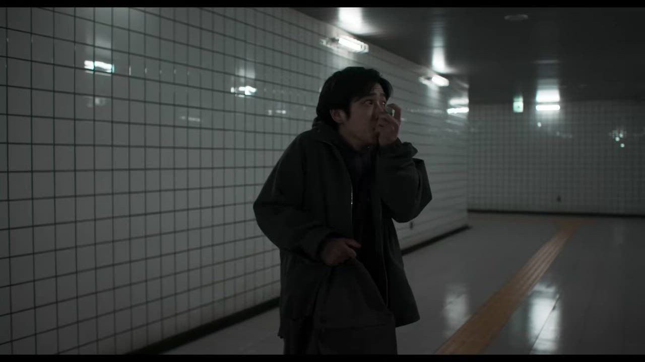 La película arranca desde una perspectiva en primera persona, retomando directamente el gameplay del videojuego y sumergiendo al espectador en la experiencia. Conforme avanza, cambia a una narrativa en tercera persona que introduce al personaje interpretado por Yamato Kochi: un hombre común en sus treintas, emocionalmente distante, que encarna esa indiferencia urbana que muchos hemos normalizado. Es ahí donde Exit 8 deja de ser solo una adaptación y empieza a construir identidad propia, algo que muchas películas del género ni siquiera intentan.