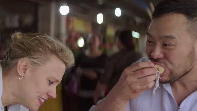 Desayuno, almuerzo y cena es una serie de televisión documental de origen estadounidense de 2019. La premisa de la serie gira en torno al famoso chef David Chang quien se encuentra con una celebridad en una gran ciudad durante cada episodio, para entablar conversaciones acerca de la comida y degustar una variedad de alimentos locales. Desayuno, almuerzo y cena se desarrolla en distintos lugares y con celebridades de diversas: en Vancouver, Canadá, con el actor Seth Rogen; Marrakech, Marruecos, con la talentosa Chrissy Teigen; Phnom Penh, Camboya, con la comediante Kate McKinnon; y Los Ángeles con el actor Lena Waithe.